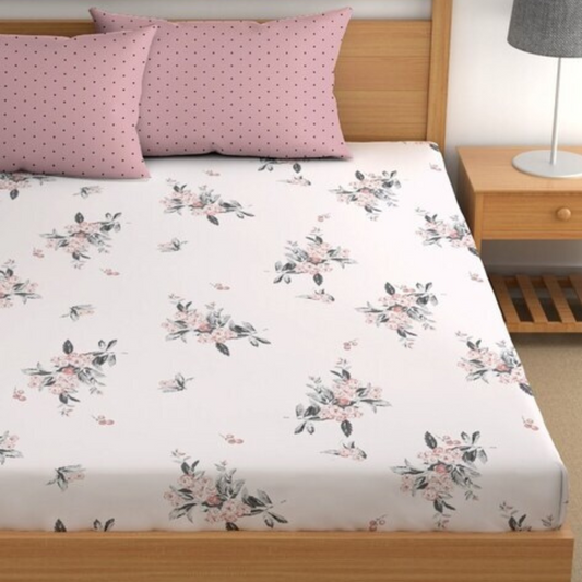 Wildflower Elegance cotton double bed Bedsheet with 2 Pillow Covers ( Elastic fitted )