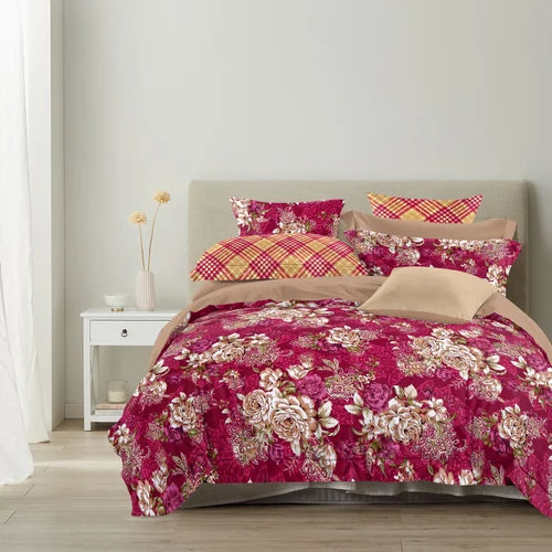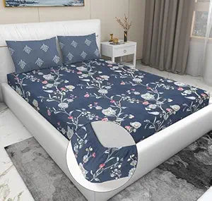 Wildflower Elegance cotton double bed Bedsheet with 2 Pillow Covers ( Elastic fitted )