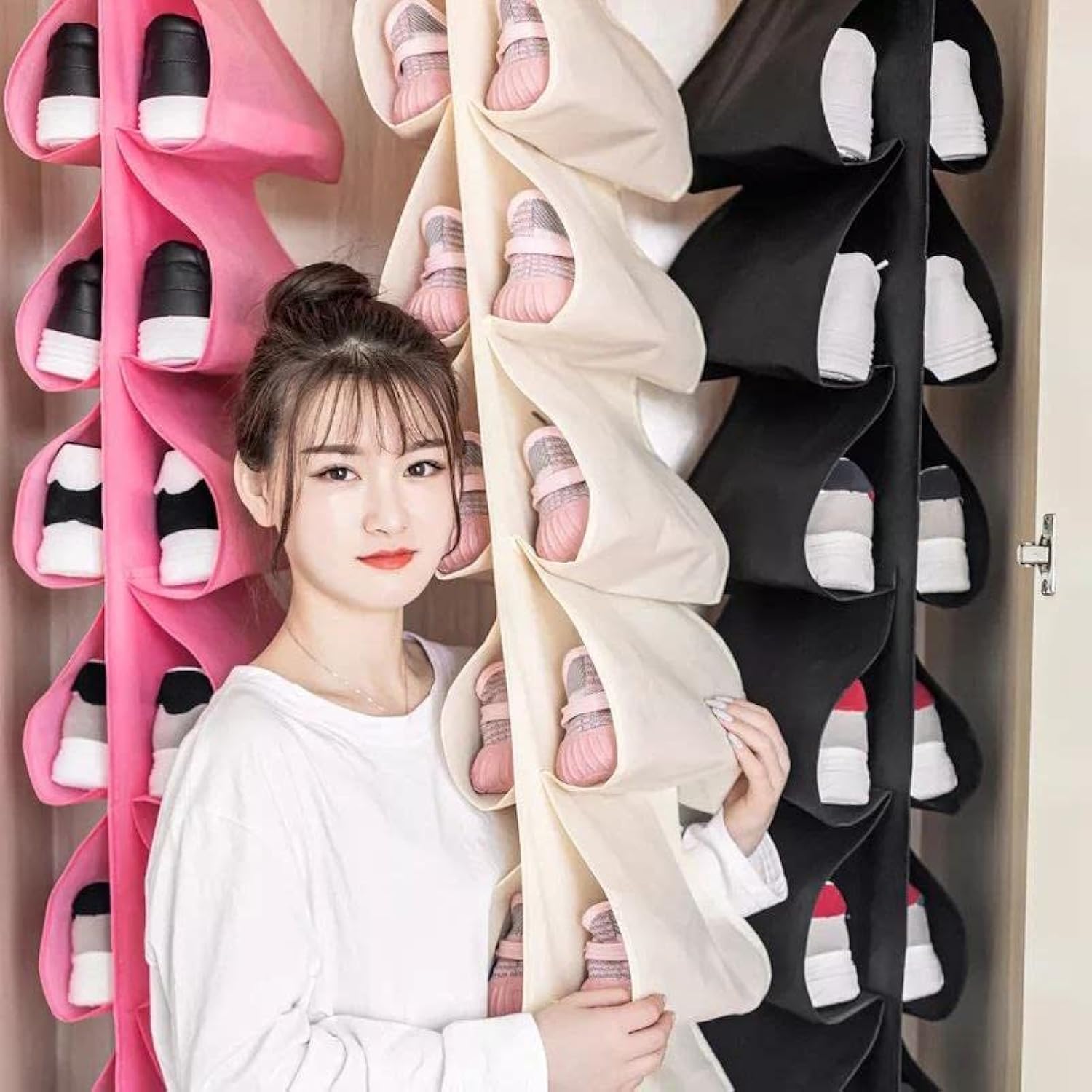 Declutter your wardrobe and maximize space effortlessly with this 12 Pocket Hanging Shoe & Accessories Organizer, crafted from durable non-woven fabric for everyday use. Whether you have limited closet space or simply love keeping things organized, this foldable vertical storage rack is the ultimate solution for storing shoes, slippers, scarves, belts, cosmetics, and more.