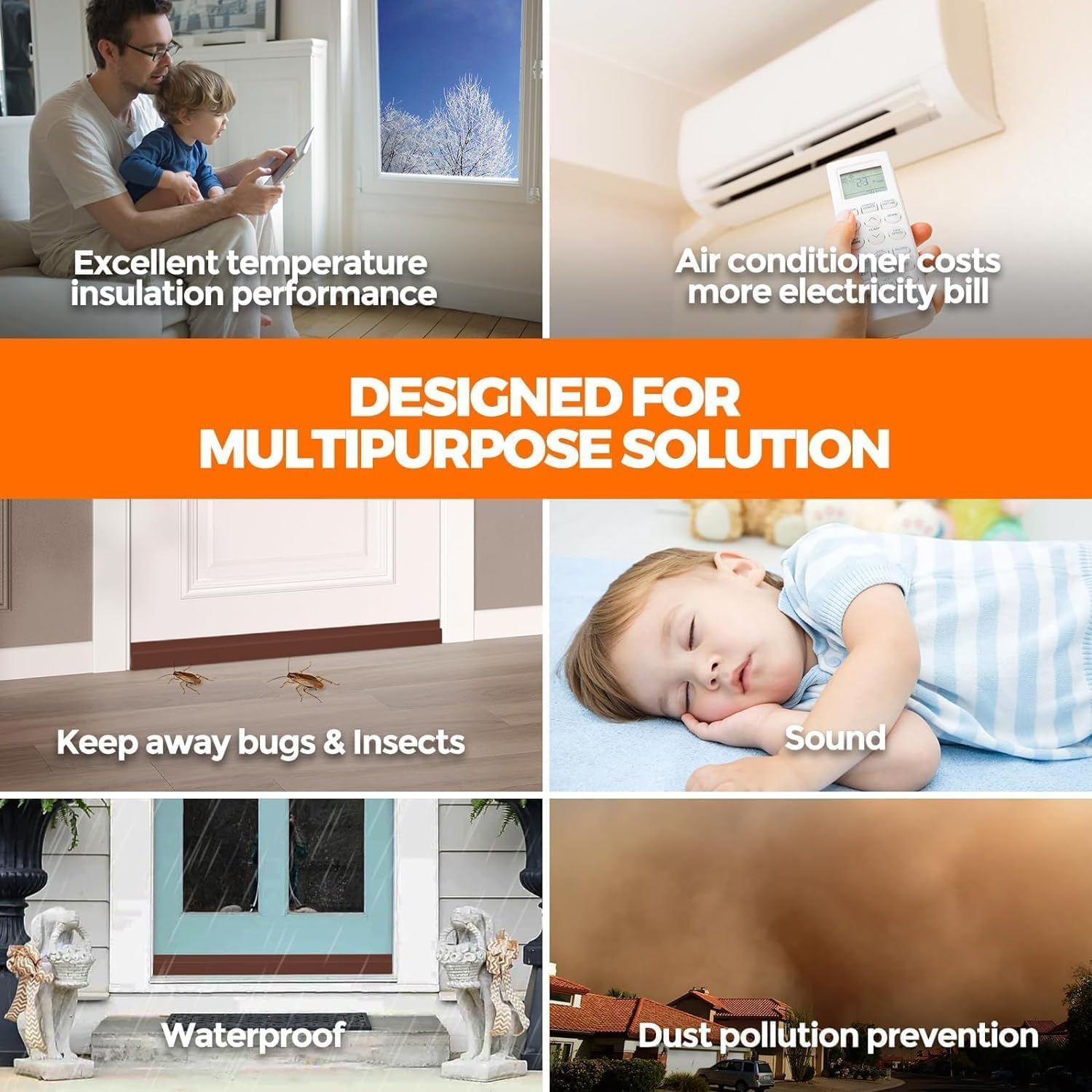Creates a tight barrier that keeps cockroaches, insects, dust, and outside noise where they belong — outside.