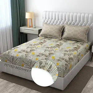 Beautiful Elastic fitted Cotton Printed Bedsheet for Double Bed King Size Bedsheet with 2 Pillow Covers